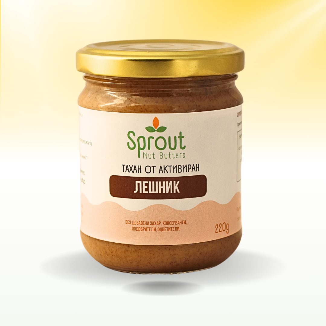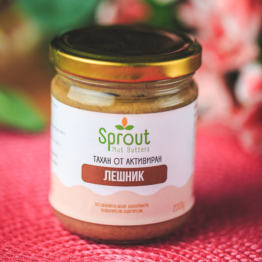 Тахан от активирани лешници с изискан ядков вкус и кремообразна текстура. Богат на витамини и минерали, чудесен за сладки и солени ястия.