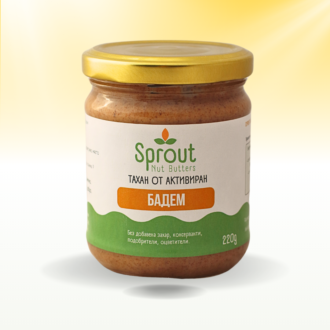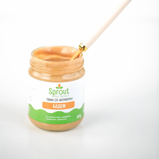 Кремообразен тахан от активирани бадеми, с богат ядков вкус и високо съдържание на фибри и витамини. Идеален за добавка към смутита и овесени каши.