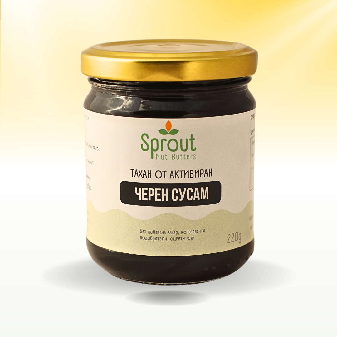 Тахан от черен сусам с наситен вкус и гладка текстура, богат на калций и желязо. Подходящ за разнообразие от здравословни рецепти.